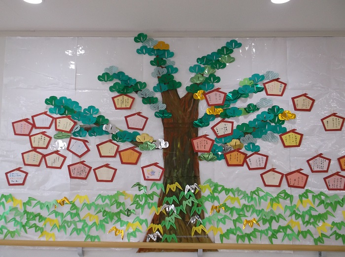 老人保健施設ひまわり デイケアお正月飾り制作愛生館ブログ。