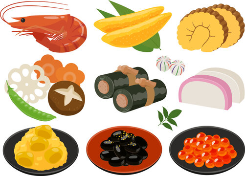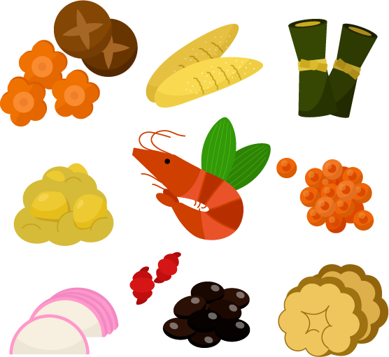 お正月に食べたいおせちの無料ベクターイラスト素材 - PICaboo!ピカブー!無料ベクターイラスト素材。