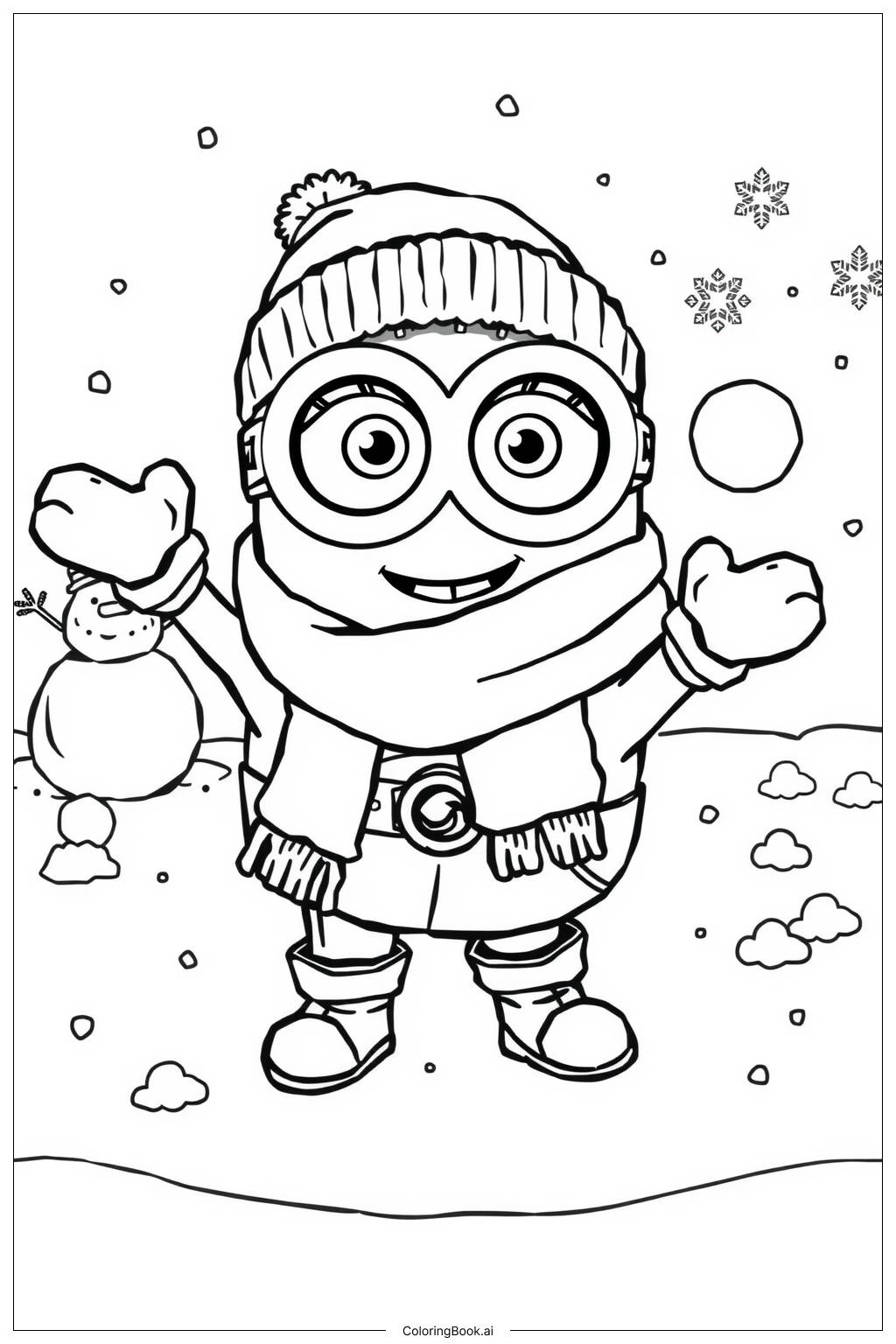 冬に雪の中で遊ぶミニオン 塗り絵ページ 無料のPDF&PNGプリント。