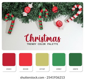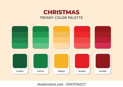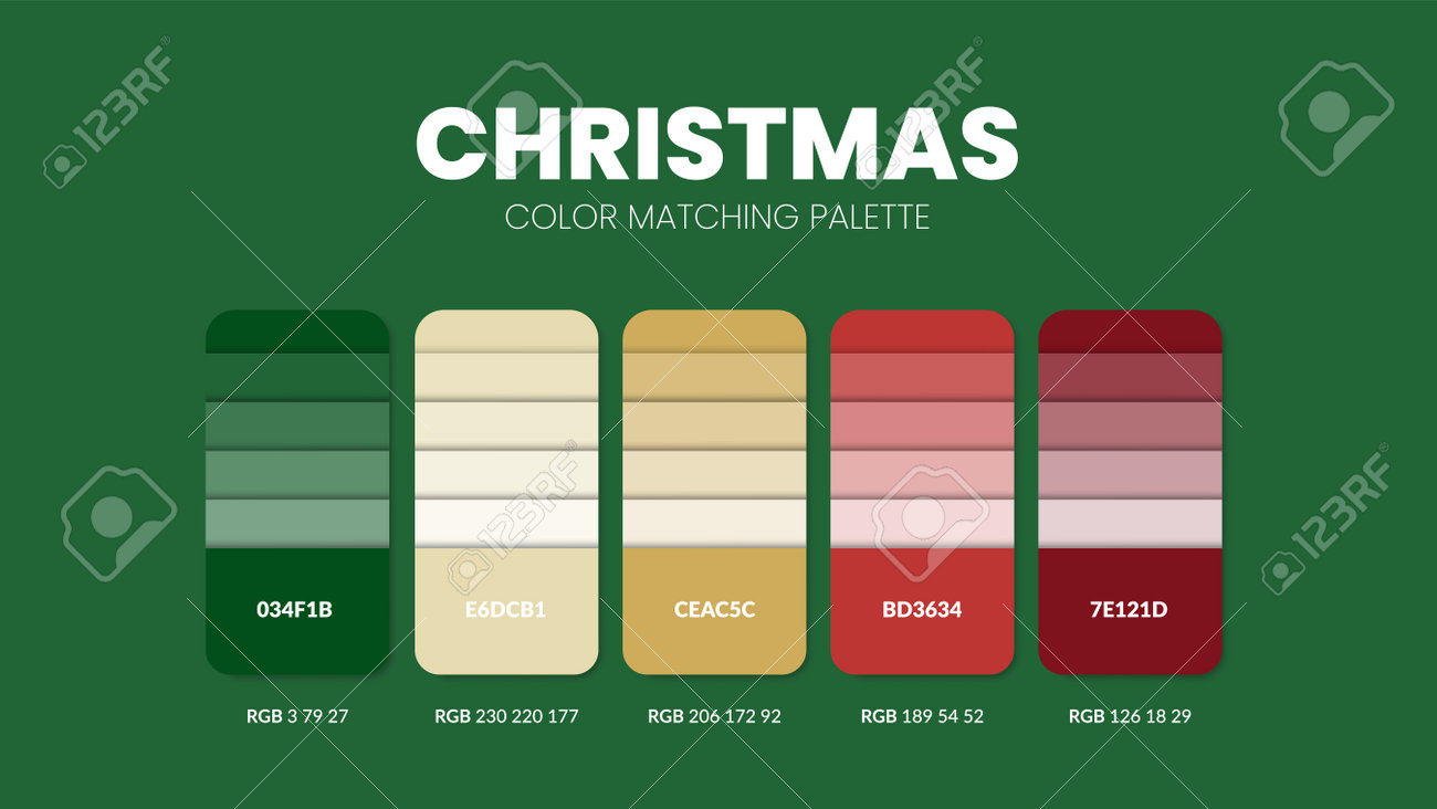クリスマステーマのカラーパレットまたは配色は、今年のトレンドの組み合わせとパレットガイドであり、rgbまたはhexのテーブルカラーシェードです。春のファッション、家、インテリアデザインの色見本。のイラスト素材・ベクターImage 195850333。