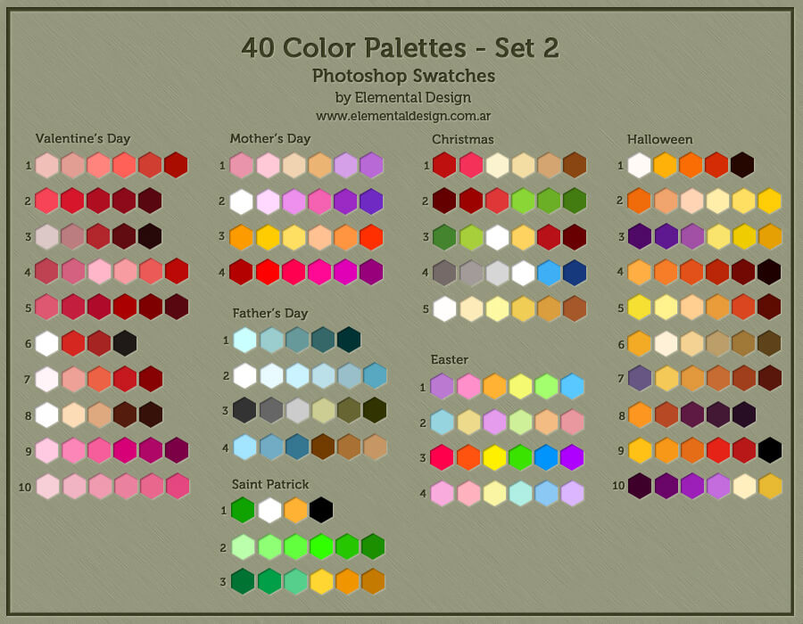 バレンタイン、母の日、クリスマス、ハロウィンに使えるカラーパターン 40 color swatches SET 2WordPressのための便利帳。
