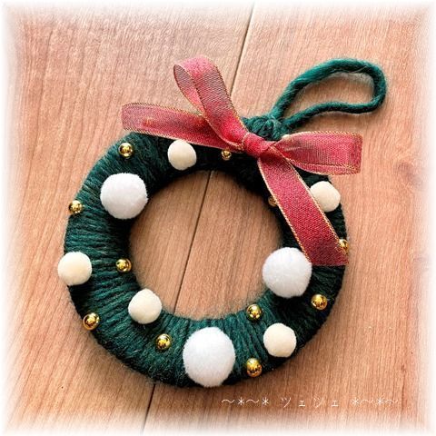 気分はクリスマス♪毛糸をぐるぐる巻いて作るリースほいくびより。