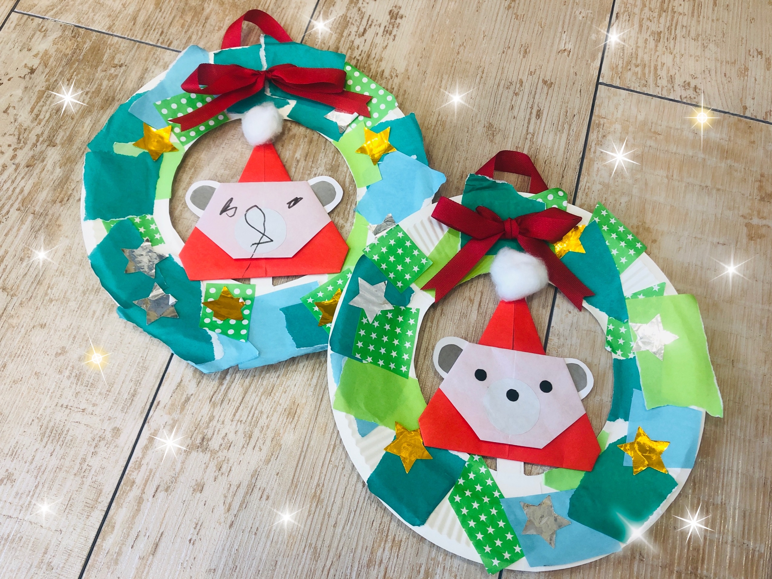 11月ぽかぽかの日 紙皿でクリスマスリース作りキッズルームつぼみ -confiture。