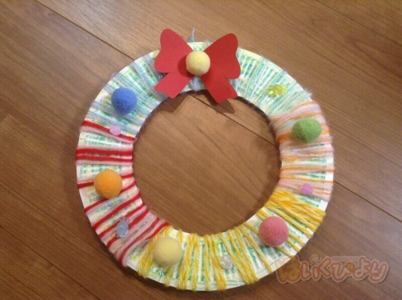 毛糸ぐるぐる!紙皿クリスマスリース〜ぬくもりいっぱい製作遊び〜保育と遊びのプラットフォーム ほいくる。
