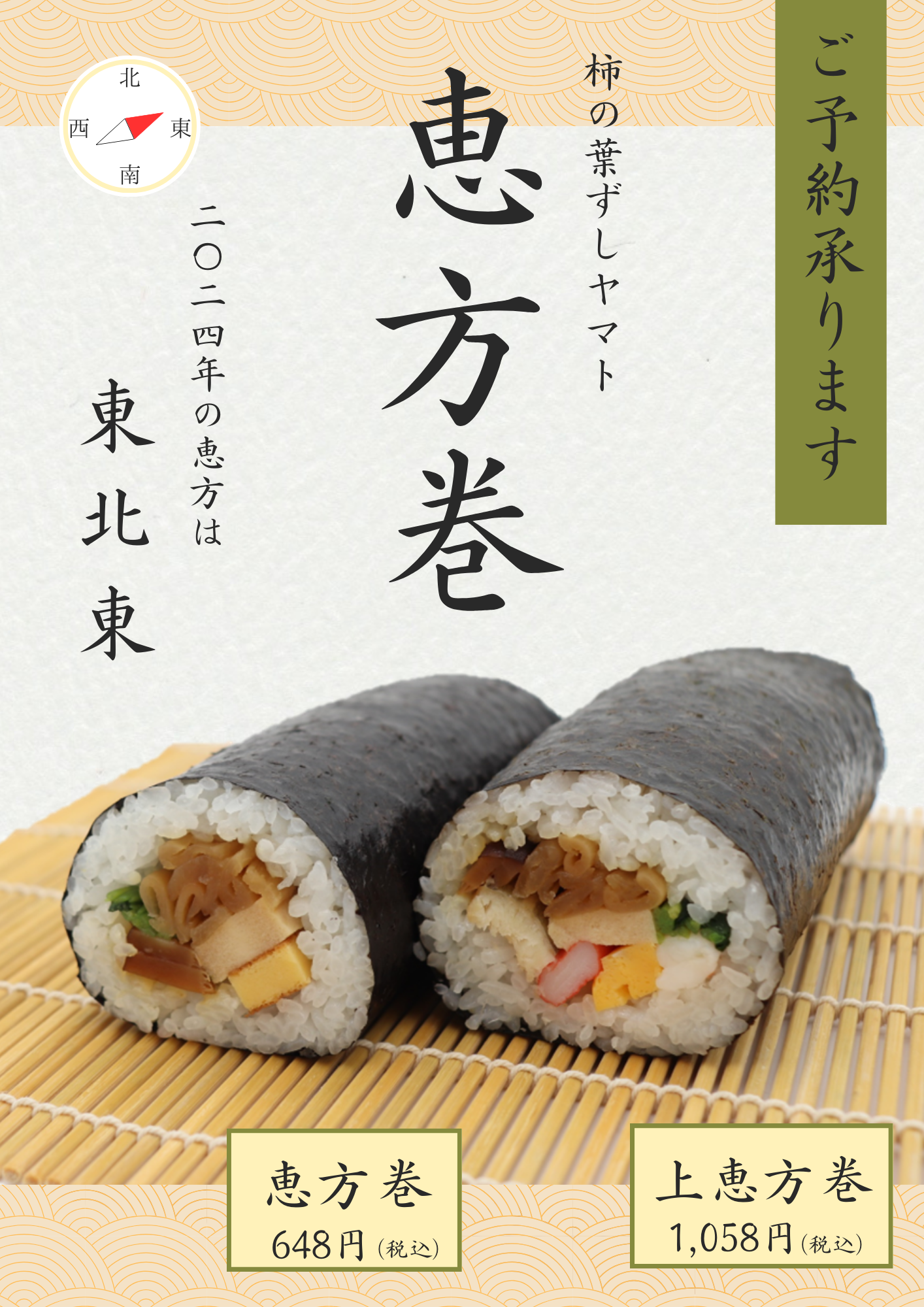 2025年、恵方巻きはどの方角?食べ方は?おいしいお米の手作り恵方巻きで来福。