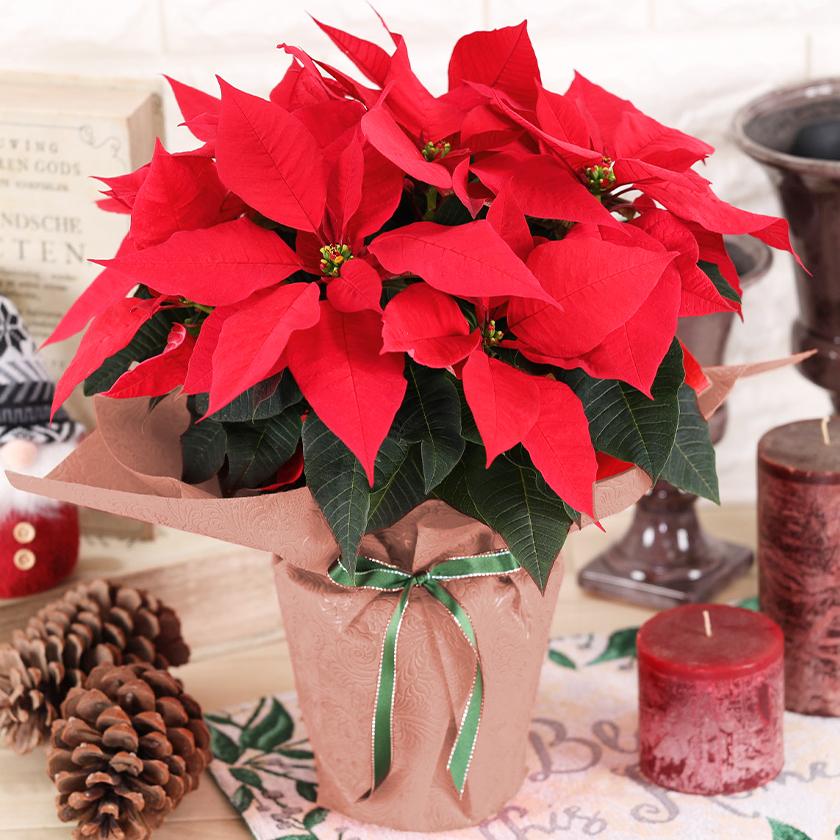 Amazonクリスマス ギフト 真っ赤なポインセチア鉢 ラッピングしてお届け バイヤーこだわり厳選品種 鉢花 フラワーギフト クリスマス お歳暮クリスマスビューティーマーブル 5寸鉢観葉植物 オンライン通販。