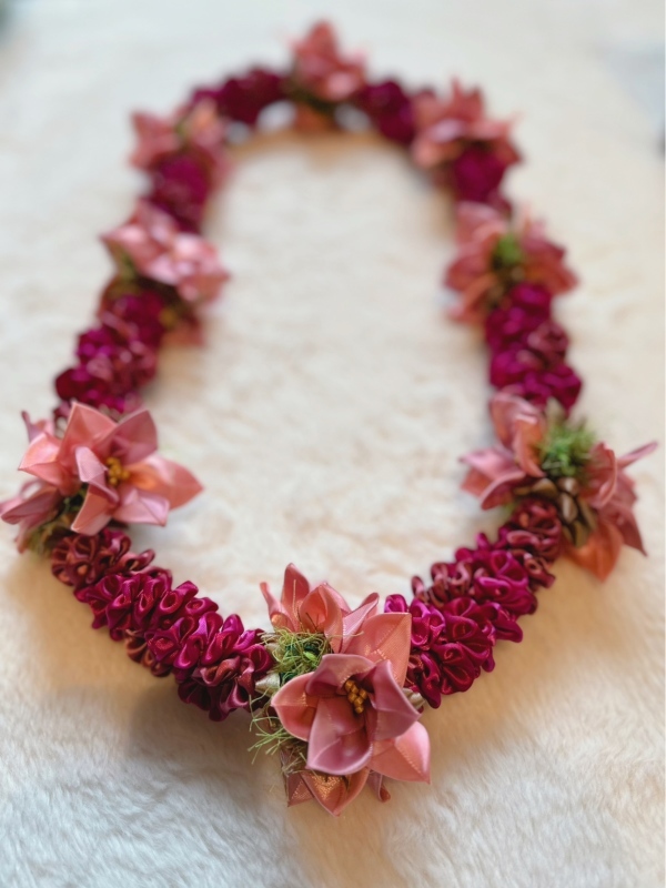 Christmas Beauty Pink Poinsettia クリスマス ビューティー ピンク ポインセチア:ハワイでリボンレイ&製作スクール Ribbon lei Happy na Mainichi。