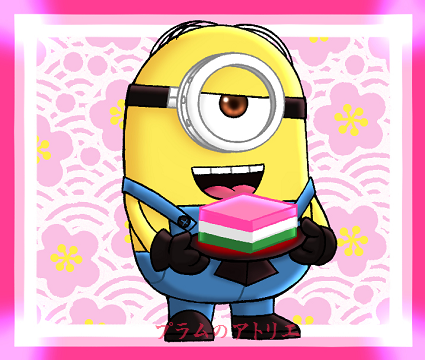 プラムのアトリエ: 2019年3月3日 ひな祭り 桃の節句 ミニオンズ ミニオン・スチュアート+菱餅 ミニキャラ ちびキャラ イラスト。