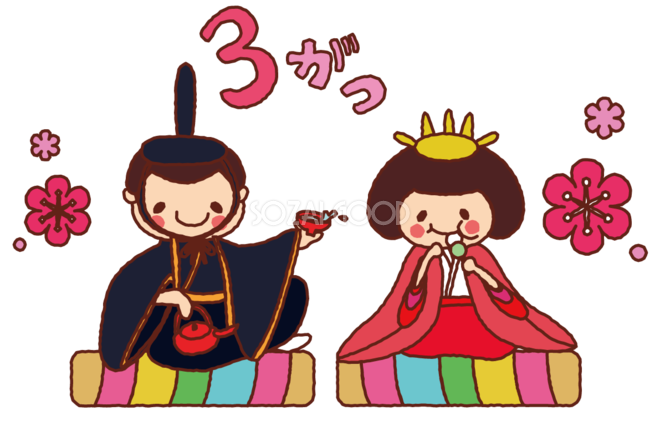 3月といえばひな祭り!桃の節句・お雛さまのイラストまとめSOZAIC.com。