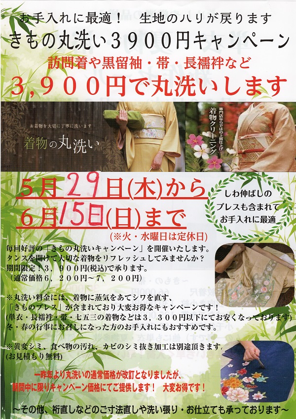 春の丸洗いキャンペーン開催 5月29日 木 ~6月15日 日東京都豊島区 着物呉服専門店おめしや。