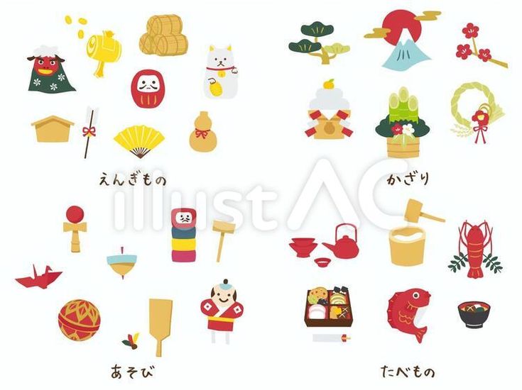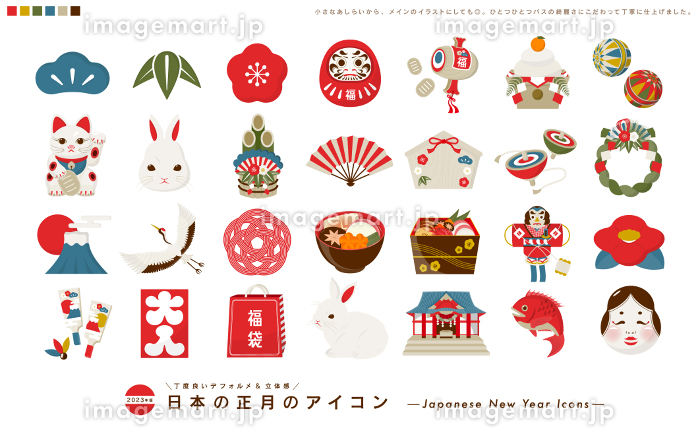 パステルカラーのかわいい正月アイコンセットのイラスト素材82997138- PIXTA。