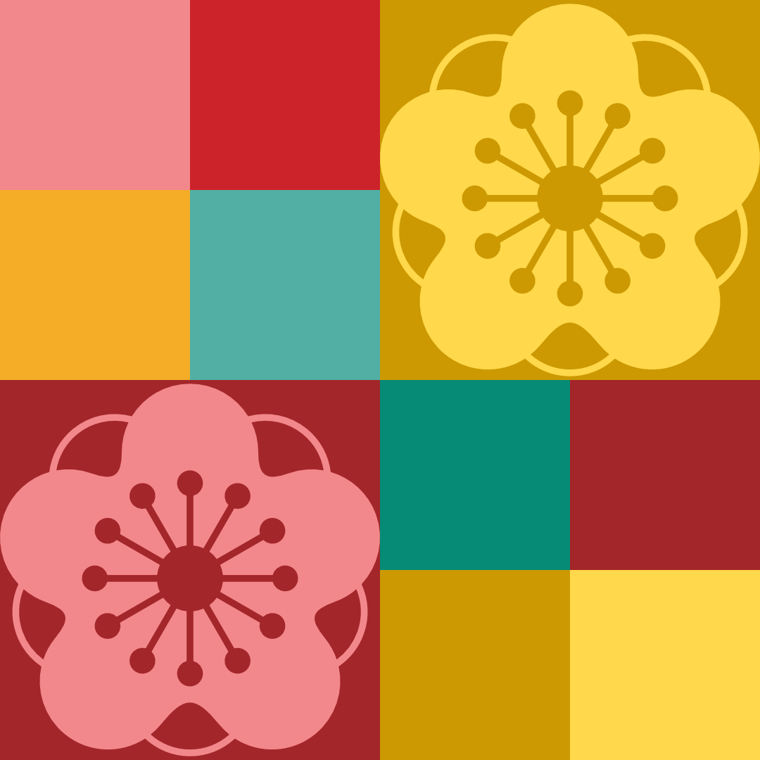 市松フレーム&梅:正月・年賀状 カラー イラスト - No: 22352707無料イラスト・フリー素材なら「イラストAC」。