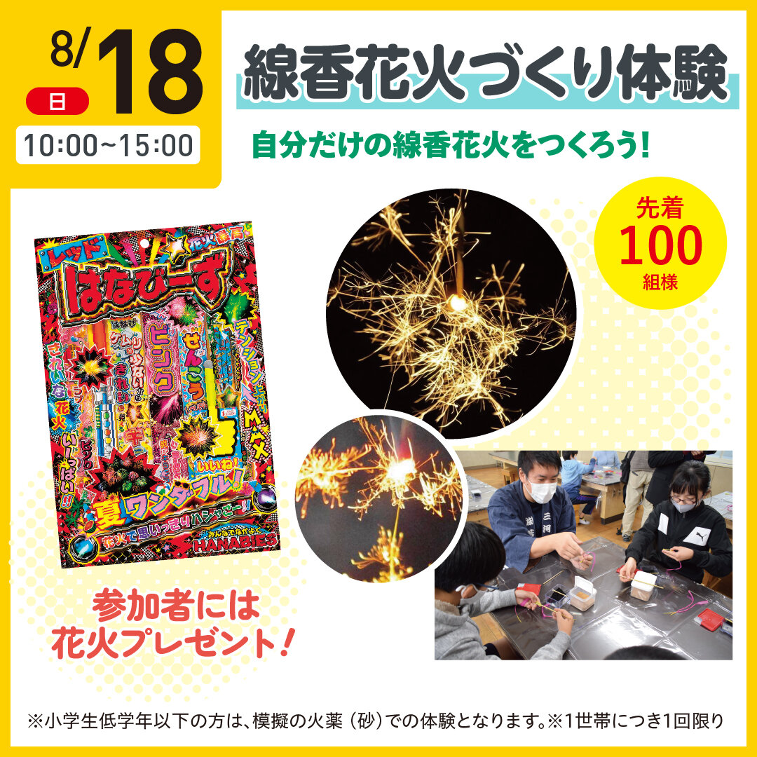 F1 線香花火 作り 体験5名様までワークショップ 自由研究 夏の思い出!線香花火作りワークショップ! 柏の葉T-SITE 夏祭り2024イベント2F 柏の葉ラウンジ 2024年07月20日 土- 07月21日 日柏の葉T-SITE蔦屋書店を中核とした生活提案型商業施設。