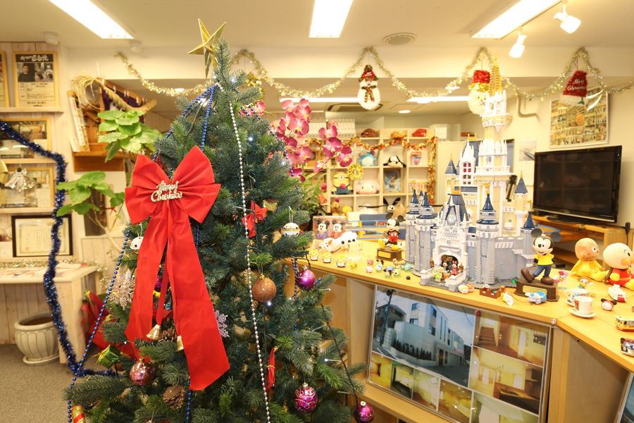お店の中はクリスマスの飾りつけで華やかです!20坪・15坪・13坪の狭小住宅・二世帯住宅の間取りは大田区の桧山建工。