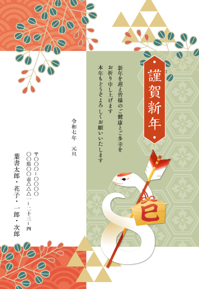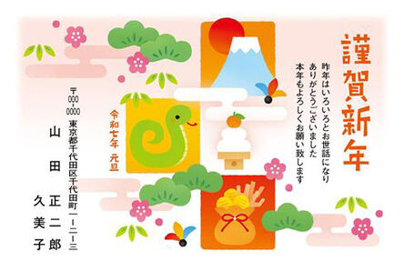 年賀状の書き方・送り方:年賀状の書き方、賀詞や文例、投函時期「年賀状・暑中見舞いドットコム」2025年・令和7年巳年 みどし・へびどし 版。