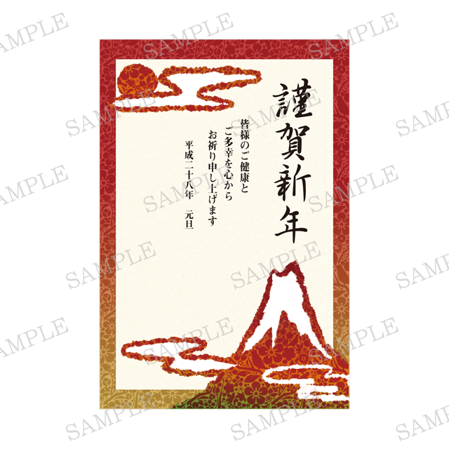 謹賀新年」インパクト大な和風の富士山年賀状No.1615_14 デザイナー年賀状 オシャレデザイン即ダウンロード・格安印刷WTP企画株式会社。