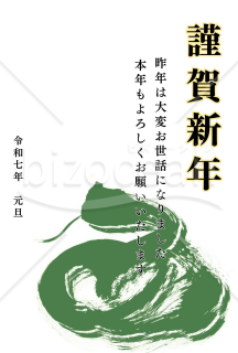 蛇の絵と謹賀新年のシンプルなデザイン 2025年 令和7年 の年賀状デザインbizocean ビズオーシャン。