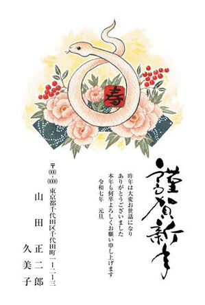 年賀状 へび年 ぼたんバック 謹賀新年 - スマホ年賀のポスコミ。