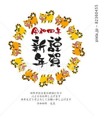 令和四年 謹賀新年 年賀状テンプレート 張子の寅の輪っかフレームイラスト 縦のイラスト素材82360455- PIXTA。
