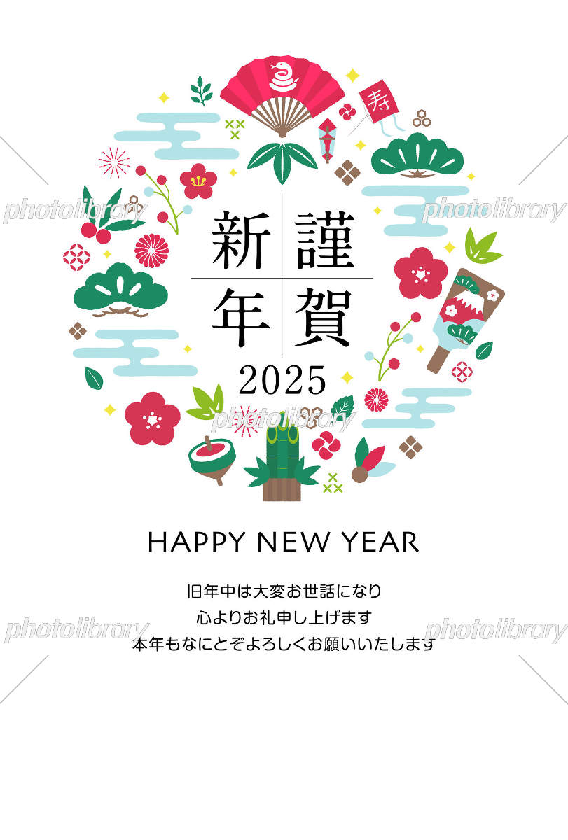 2025 令和7年 年賀状テンプレート謹賀新年サークルイラスト素材7578058- フォトライブラリ。