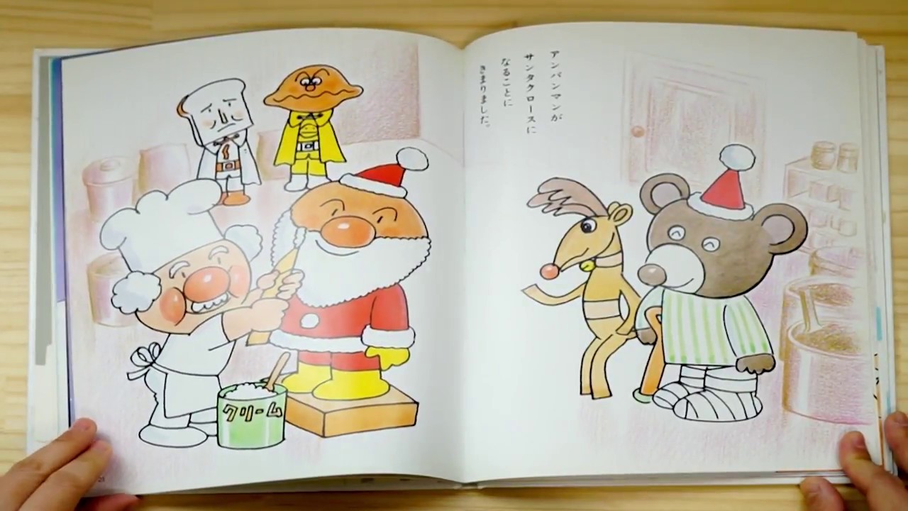 アンパンマンのサンタクロースの絵本赤鼻のトナカイとくまのサンタクロースの物語。