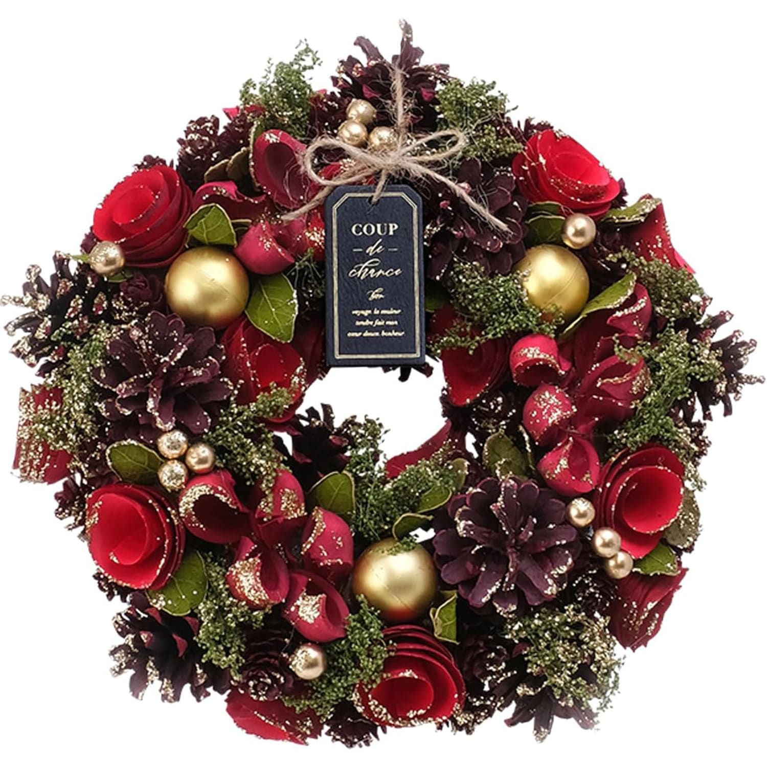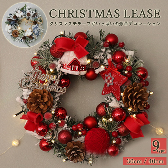 Amazon.co.jp: nicojoy クリスマスリース 玄関ドア用 直径40cm LEDライト付き クリスマス 飾り フラワーリースナチュラルリース 花輪 壁掛け 電池式 高級風 おしゃれ リアル 手作り 室内 置物 玄関 屋外 庭 パーティ イベント ドア 店舗飾り 贈り物 造花正月飾り 祝日。