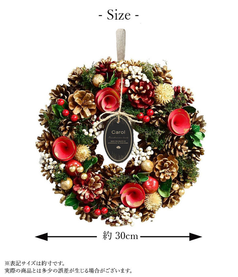 クリスマスリース リース 玄関 天然素材 直径30cm 北欧 おしゃれ ナチュラル 造花 飾り 秋 冬 クリスマス ギフト インテリア 店舗 装飾ディスプレイ キャロル クリスマスリース 30cm 送料無料 -DEPOS - プレゼント&ギフトのギフトモール。