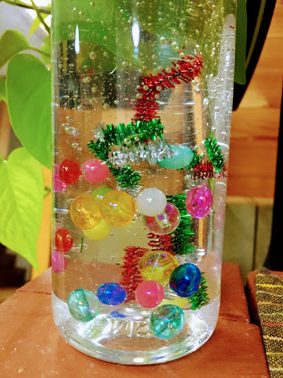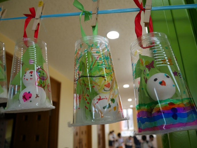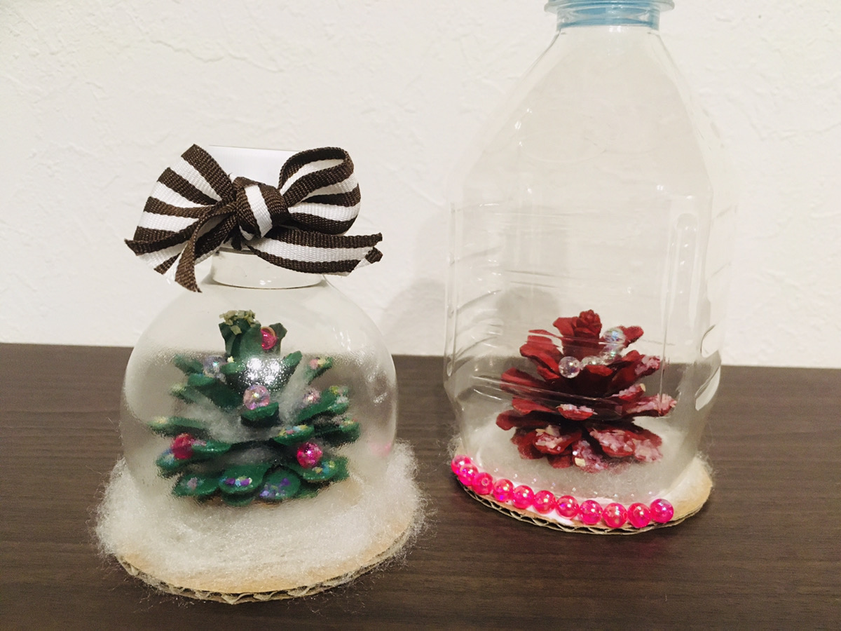 ペットボトルのスノードーム 小学校低学年用の工作 三年生の作品。