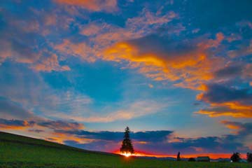 クリスマスツリーの木と夕景 北海道美瑛町- No: 4362157写真素材なら「写真AC」無料 フリー ダウンロードOK。