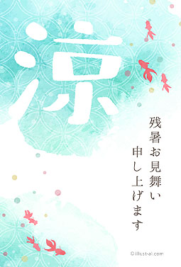 金魚柄の残暑見舞いテンプレートの無料メッセージカードテンプレート 7457 - デザインAC。