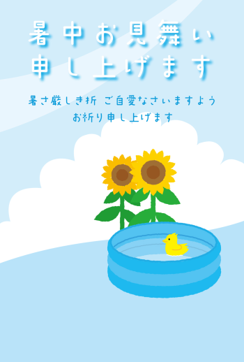 暑中見舞い-かわいいテンプレート ひまわり<無料>かわいいフリー素材 イラストK。