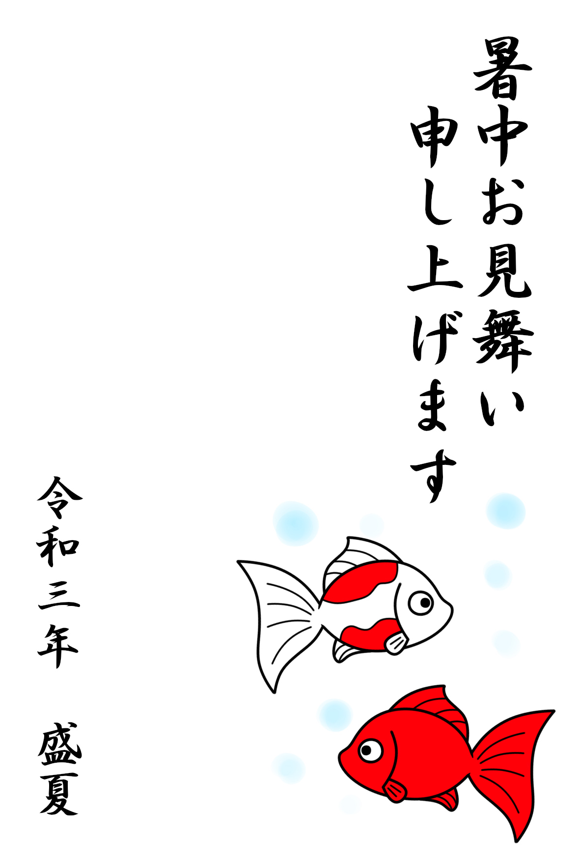暑中見舞い-シンプルテンプレート 金魚<無料>かわいいフリー素材 イラストK。
