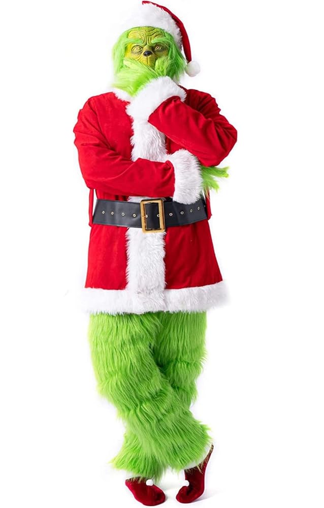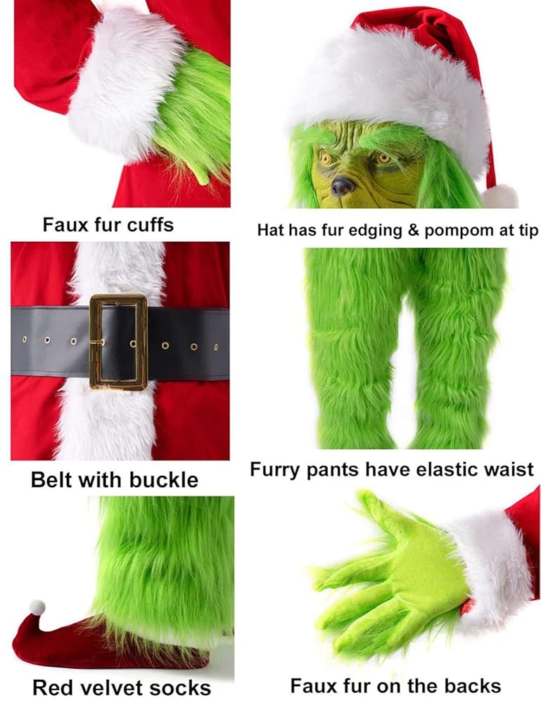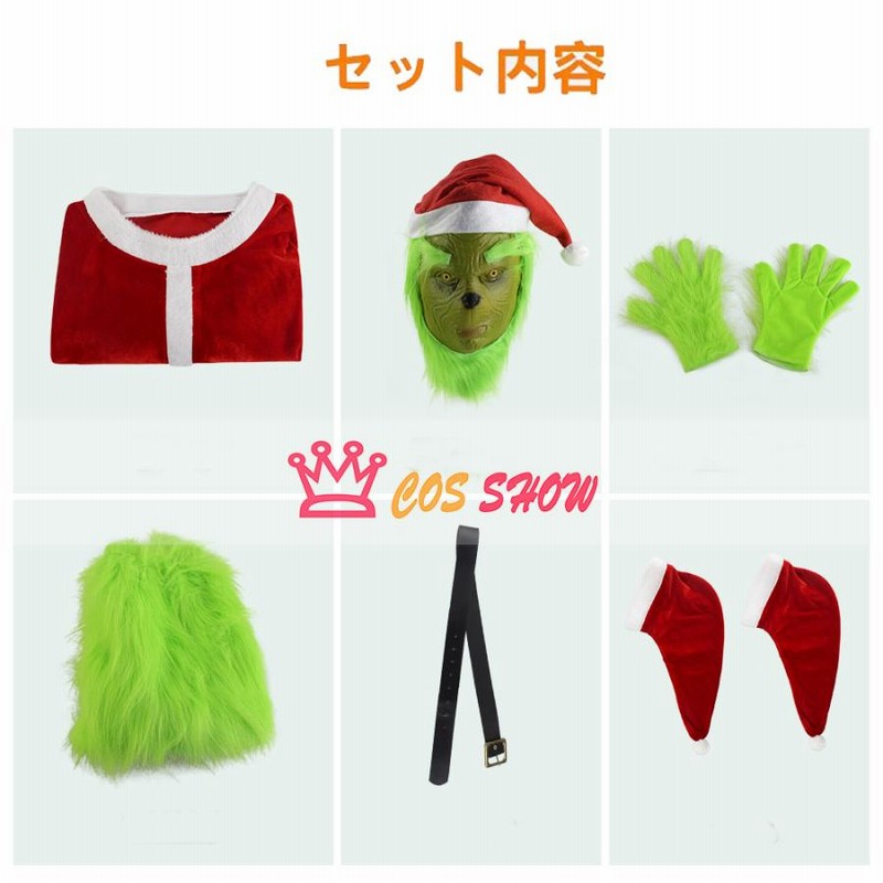 グリンチコスチュームハロウィーンクリスマスサンタコスプレ怖い緑の髪のモンスターマスク付きFruugo JP。