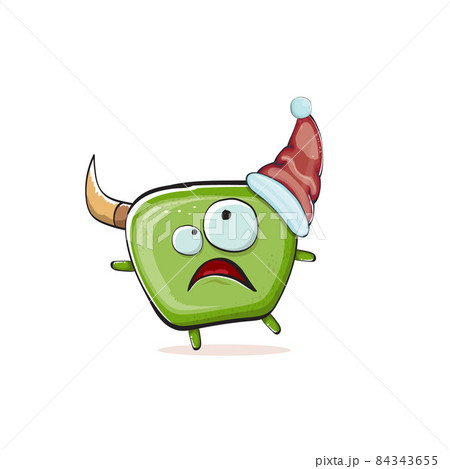 白い背景で隔離のサンタクロース赤い帽子とベクトル漫画ファンキーな緑の怪物。面白いモンスターエルフサンタクロースと子供のメリークリスマスグリーティングカード。のイラスト素材・ベクターImage 178191310。