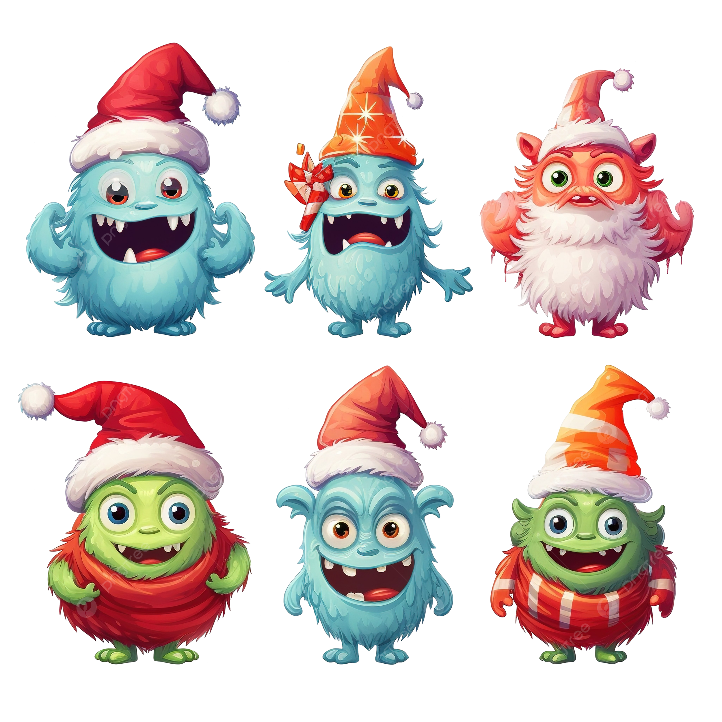 サンタ帽子をかぶったかわいいクリスマスモンスターイラスト素材透過、PNGフリー画像ダウンロード - Pngtree。