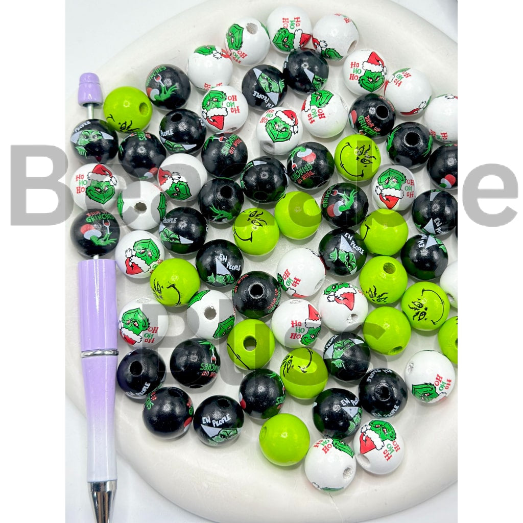 グリーンモンスターグリンククリスマスラウンドウッドビーズ、16MM – Beadable Bliss。
