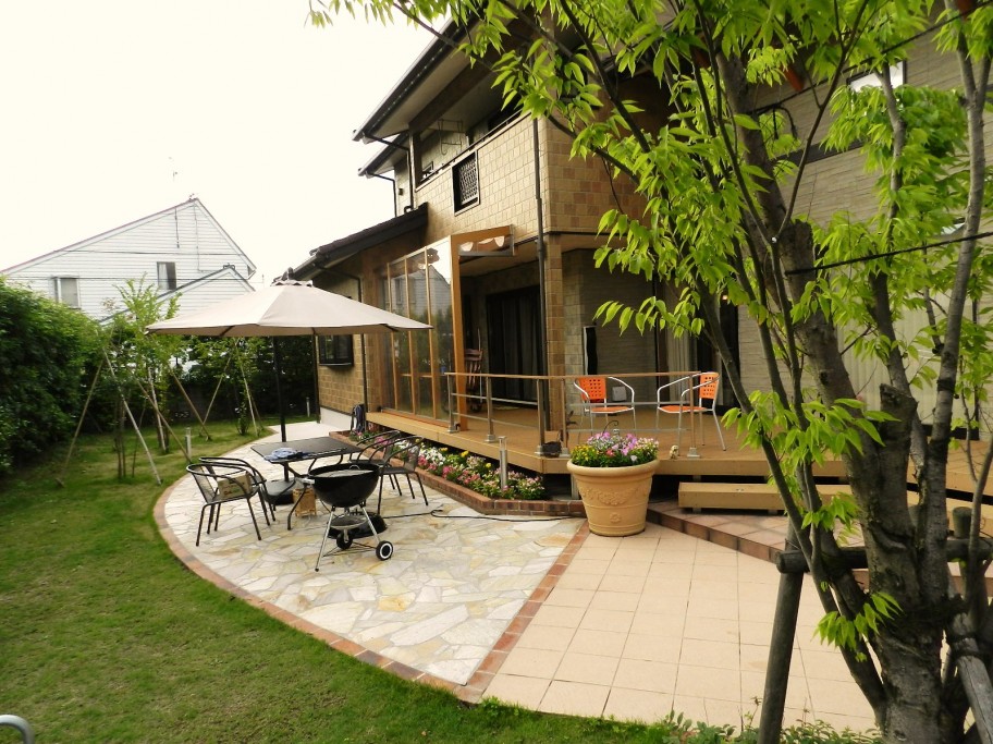 バーベキューでご家族が集まる、ウッドデッキのお庭グリーンケアお庭と外構、エクステリアのデザイン&リフォーム。