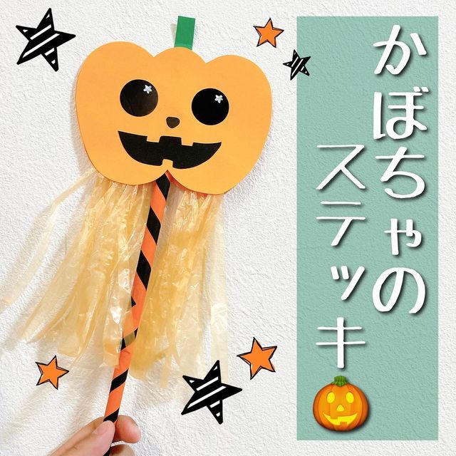 たここ on Instagram: "❇︎ @hoikuno_hondana ハロウィンに活躍、かぼちゃのステッキ🎃 仮装した時に持つといいかも!色々なキャラクターで作れるよ☆ もうちょっとすずらんテープ少なくてもよかったかな?笑 わさわさしすぎ? 反省反省。 ☆彡 保存した方は、是非いい。