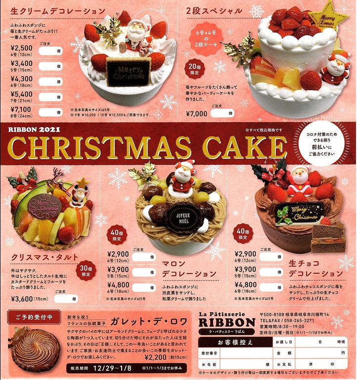 クリスマスケーキのパンフレット出来上がりました « ラ・パティスリーりぼんのブログ。