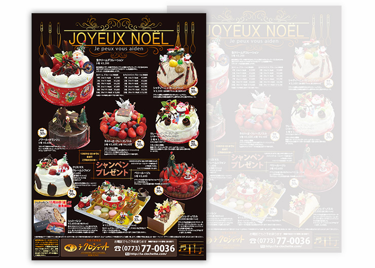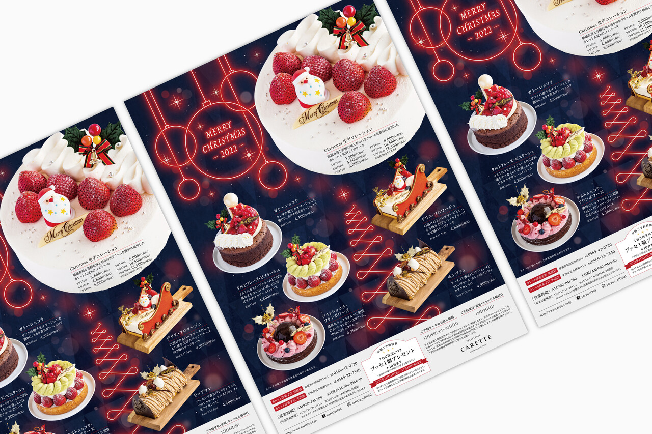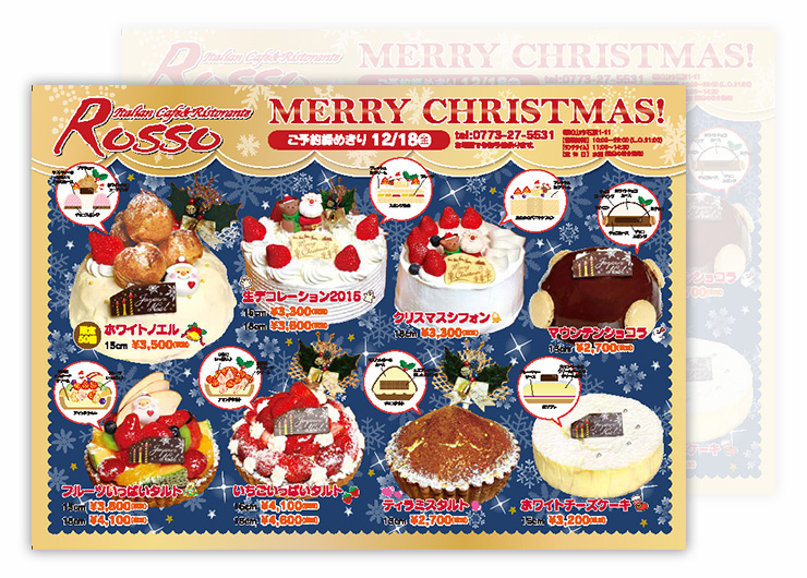 Rosso様のクリスマスケーキフライヤーパンフレット制作しチャオ。