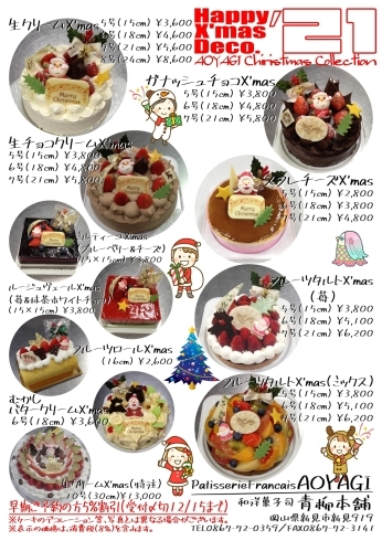 2021年クリスマスケーキ予約開始!!青柳本舗のニュースまいぷれ 新見市。