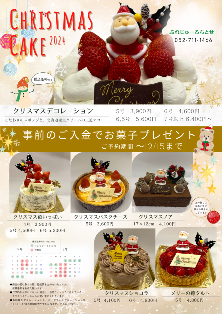 2024クリスマスケーキのパンフレット配布開始 – Patisserie Anfield。