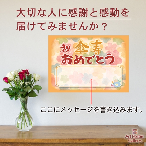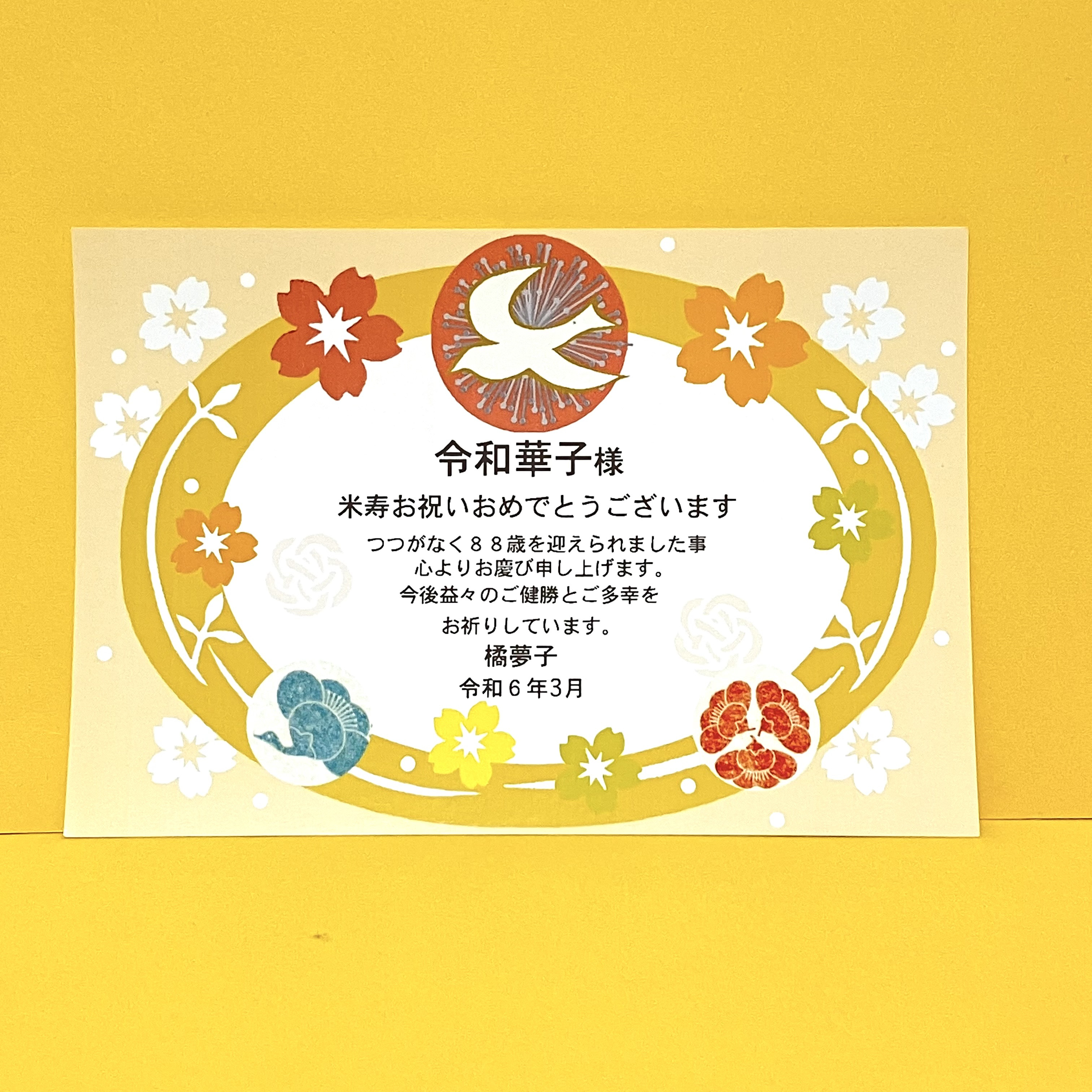 Mサイズ 傘寿祝いに贈る京友禅写真付きメッセージ。