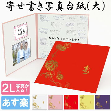 還暦 古希 喜寿 傘寿 米寿 卒寿 白寿 紀寿 百寿 寄せ書き写真台紙 大 寄せ書き+メッセージカード+2L写真が入る 長寿祝い 祝い品感謝を込めて贈る写真台紙。