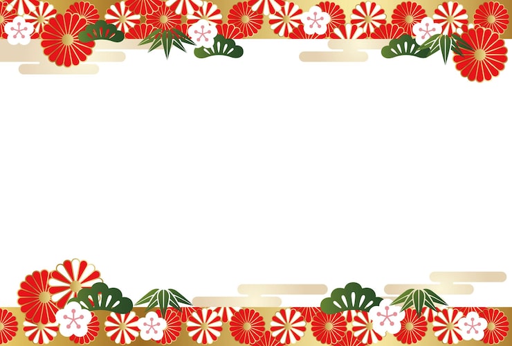 和風年賀状背景 下フチ飾り ひな形無料の雛形・書式・テンプレート・書き方ひな形の知りたい。