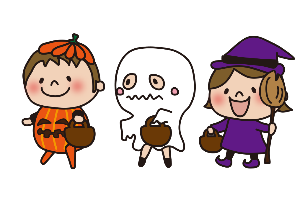 ハロウィンイラストなら、小学校・幼稚園向け・保育園向けのかわいい無料イラストお試しフリー素材 カット がいっぱいの安心サイトへどうぞ。