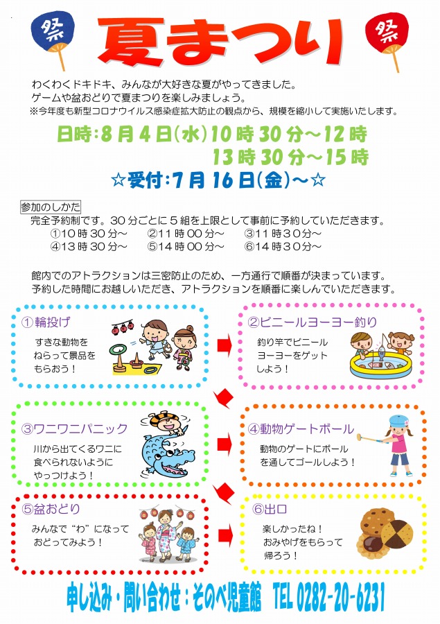 そのべ児童館 夏まつりのおしらせ 7月16日 金 受付開始です!!お知らせ栃木市社会福祉協議会。