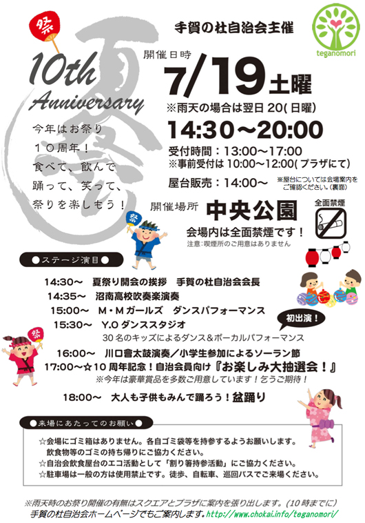 手賀の杜自治会主催 第10回夏祭り開催のお知らせ - 手賀の杜自治会。