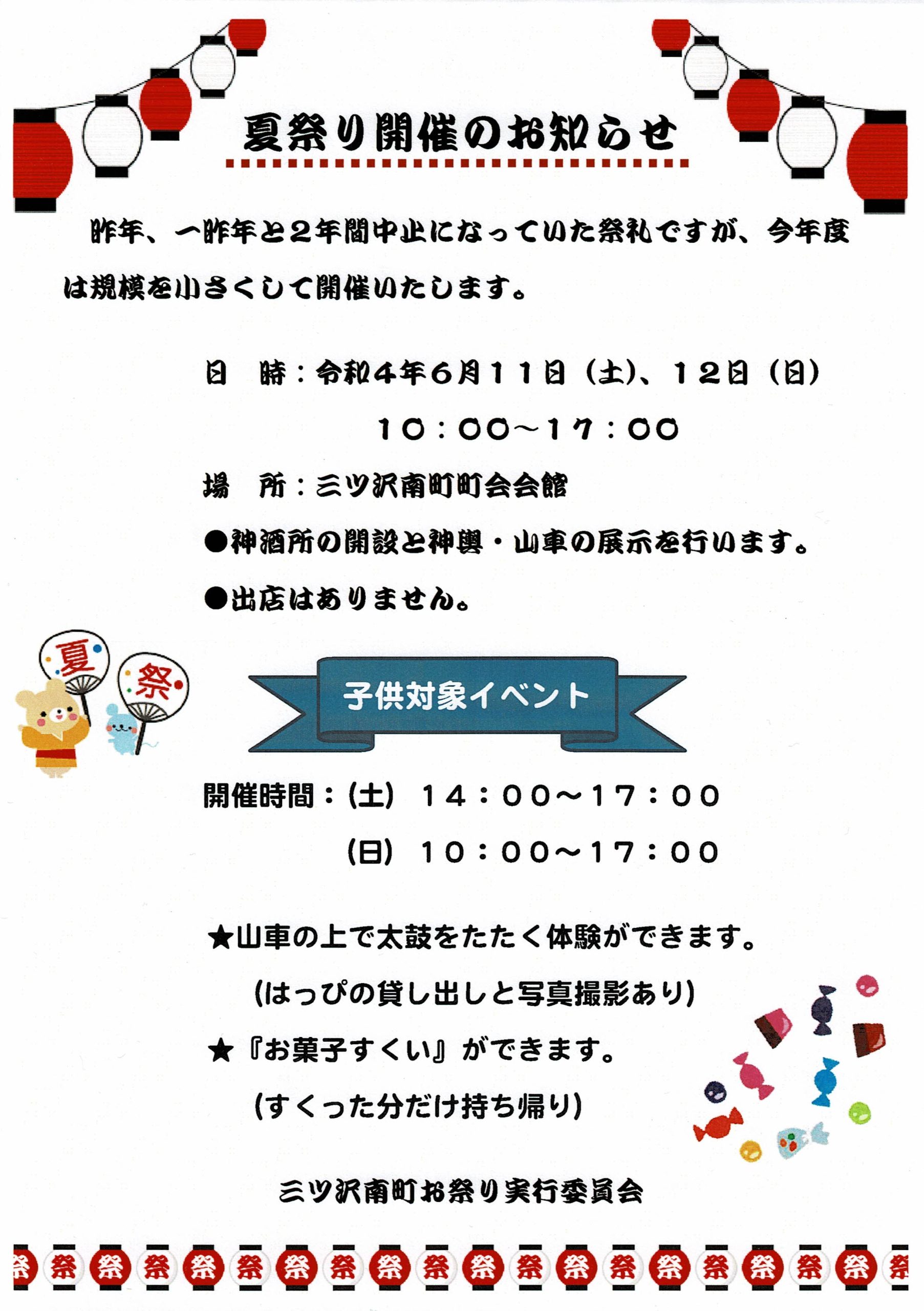 夏祭りの案内おやこっこみなと 陽まわり&福田 - 楽天ブログ。