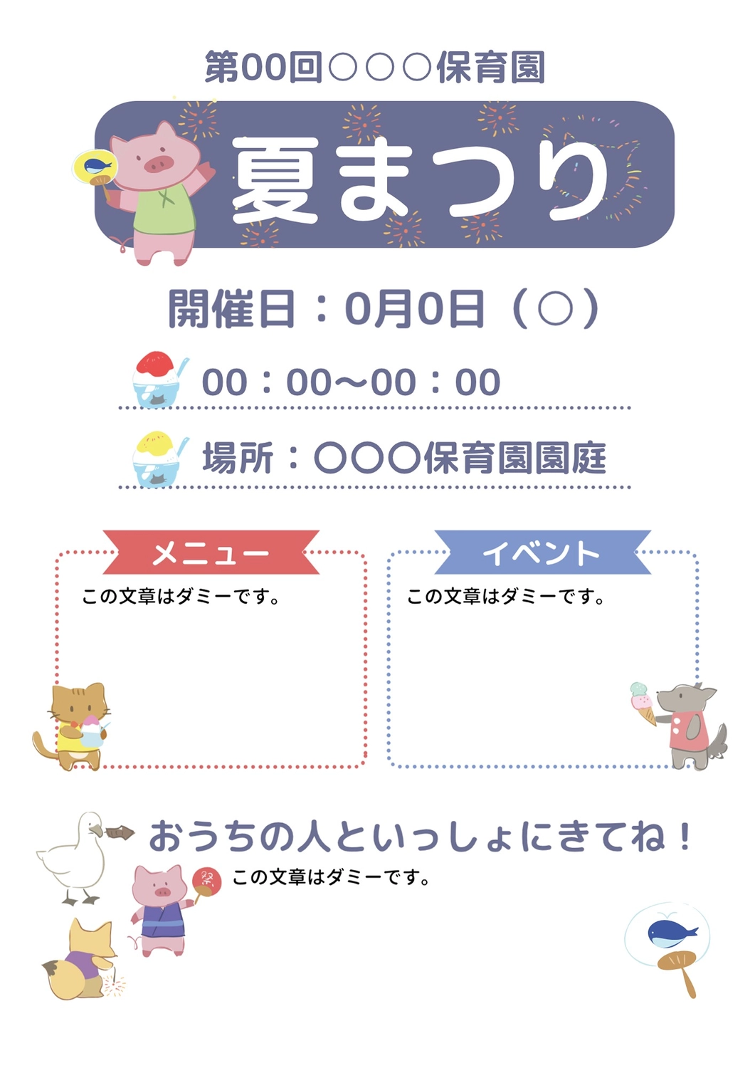 夏まつり 保育園 の無料おたよりテンプレート 7358 - デザインAC。